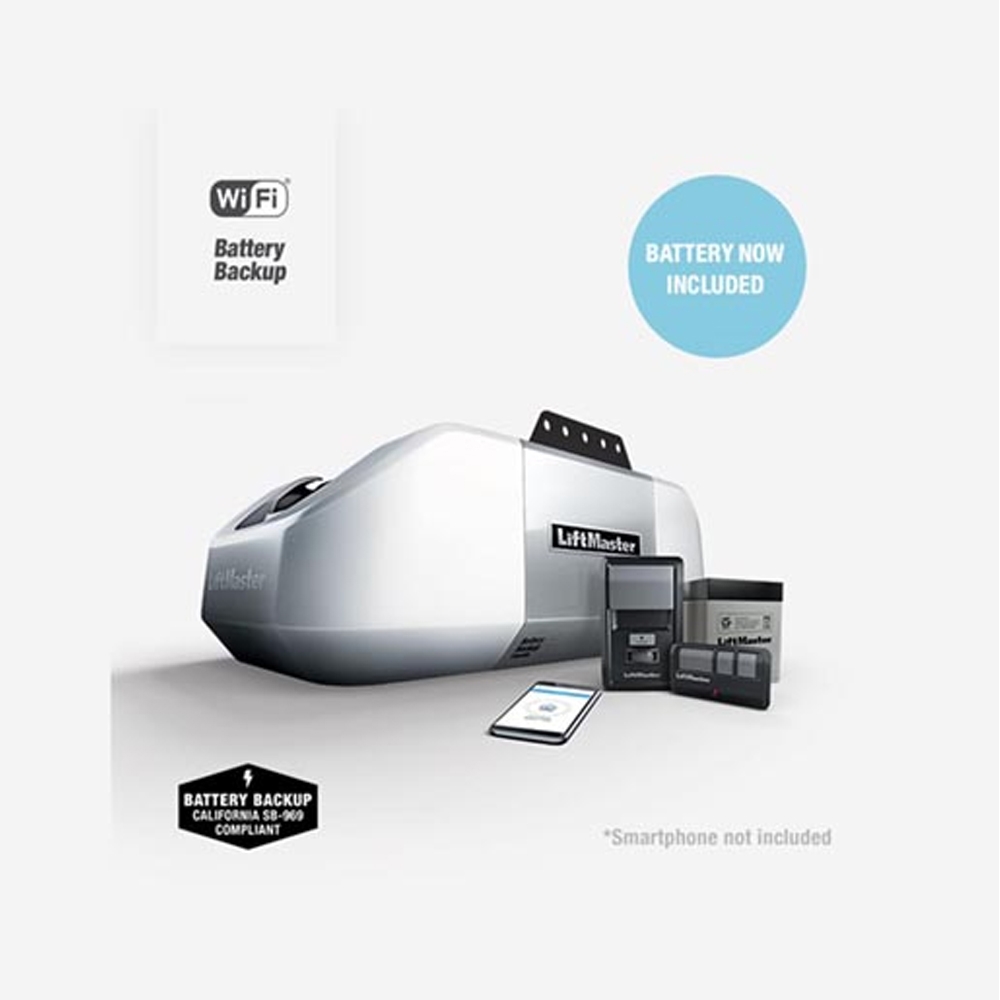 The LiftMaster 8360WLB model is manufactured by the Chamberlain Group. The 8360WLB DC chain drive is rugged and reliable. It is available with a Battery Backup System that ensures your garage door opener works when the power is out. As an additional convenient feature, this operator is also equipped with built‑in MyQ® technology that lets you monitor and control your garage door and house lights remotely by using a computer, tablet or Smartphone. It meets all UL325 requirements.