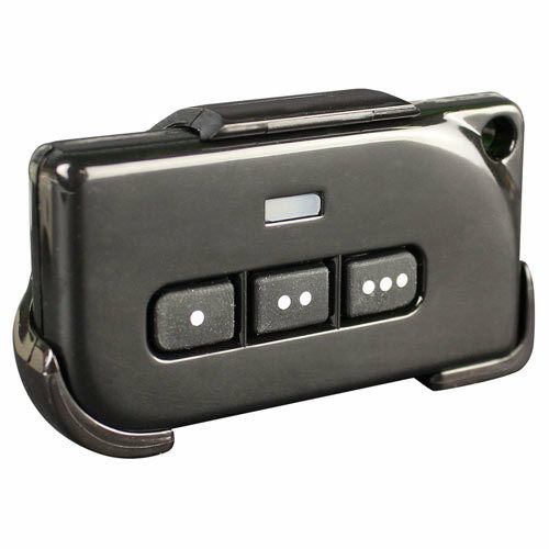 Three button transmitter can operate three garage doors with #GTR Garage Door Receivers (sold separately). Password protection is an option for enhanced security.